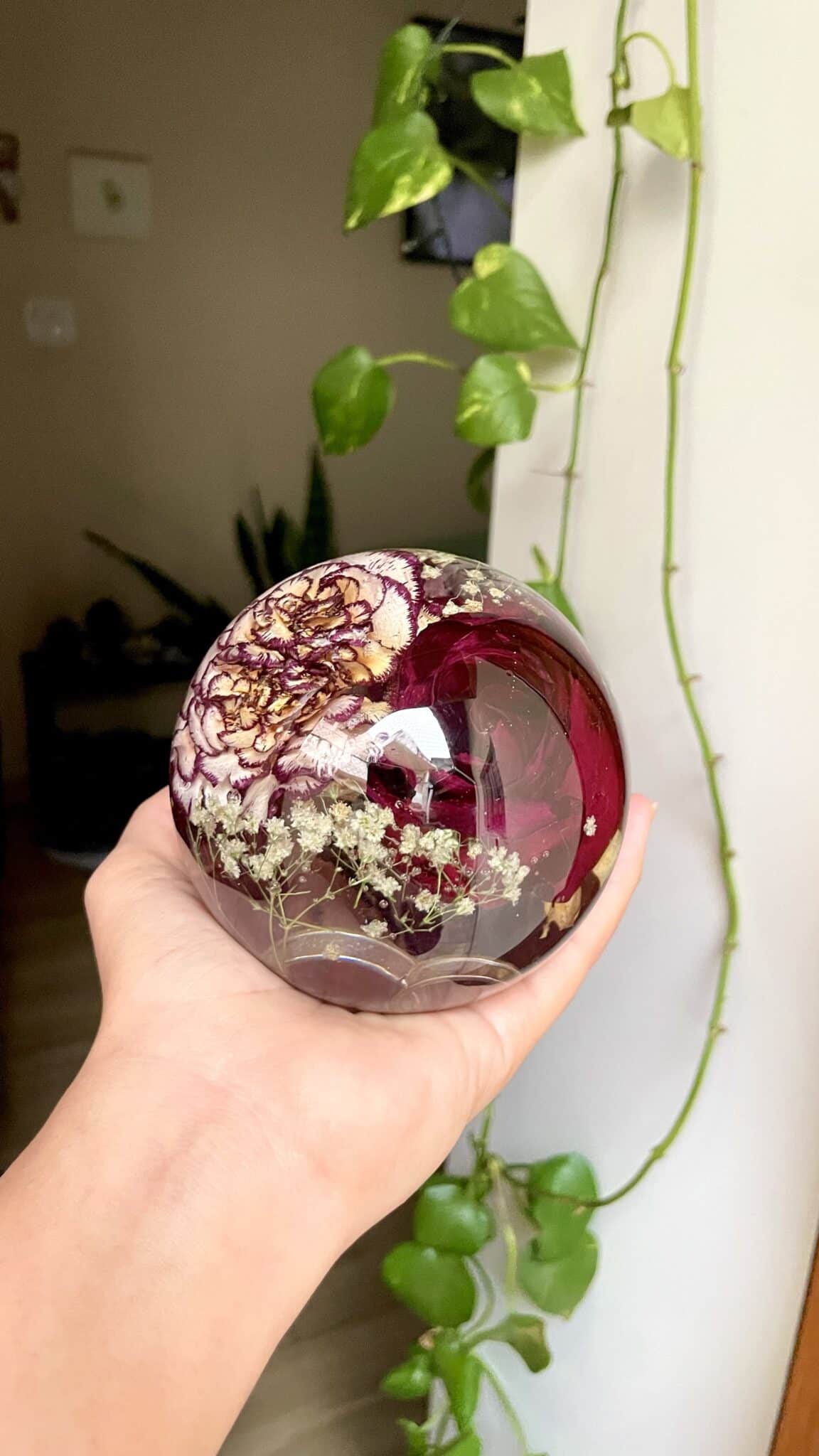 Nossa esfera de 10 cm é perfeita para compor sua decoração. Perfeita para flores pequenas e delicadas.