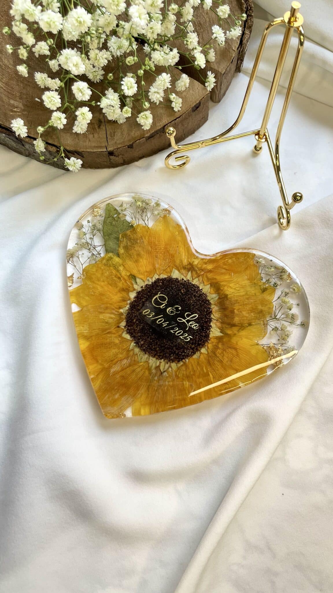 Nossa plaquinha de coração é perfeita para eternização de pouca flores ou flor única.